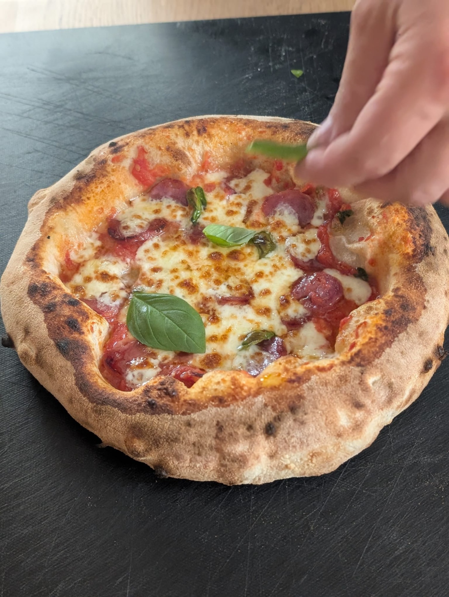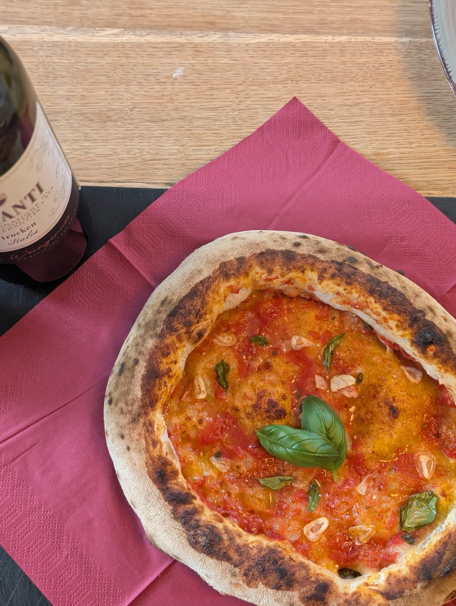 - "L'Aglio d'Oro" (Der goldene Knoblauch) Eine Hommage an die Seefahrer Neapels. Unsere Marinara-Interpretation besticht durch die intensive Fruchtigkeit der San Marzano Tomate, kombiniert mit hauchdünn geschnittenen, frischen Knoblauchscheiben, die im Ofen ihr sanftes Aroma entfalten. Abgerundet mit Parmesan, Basilikum und nativem Olivenöl.